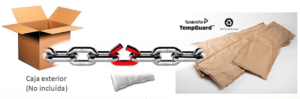 Compuesto por unas planchas patentadas compuestas por una pasta de papel reciclado + caja de cartón exterior, convierten esta solución en un aislante ecológico con características adecuadas para el envío de productos con necesidad de frío, durante +-48h*.