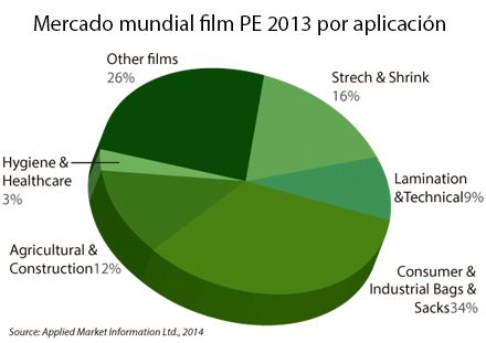 En 2013, el noreste de Asia (incluida China) fue la principal región productora, con un tercio de la producción mundial de film de PE, seguida por NAFTA, con una cuota del 17% y Europa Occidental, que representa el 15 % de la producción mundial.