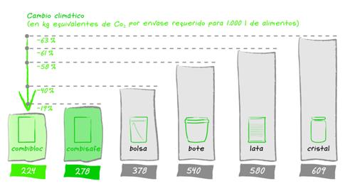En un análisis de ciclo de vida (ACV) llevado a cabo por el Instituto para la Investigación de Energía y Medio Ambiente (IFEU), se han comparado los impactos ambientales de las principales soluciones de envasado para alimentos de larga duración usados en la actualidad. El resultado: en comparación con latas de metal, tarros de cristal, bolsas retortables y recipientes de plástico para alimentos, el envase de cartón obtiene el mejor rendimiento ambiental. En comparación con las otras soluciones de envasado que se incluyen en el estudio, utilizar envases de cartón puede ahorrar emisiones de CO2 hasta en un 63%, y el consumo de recursos fósiles en hasta un 69%. Según el estudio, los principales impulsores de los impactos ambientales de una solución de envasado son el material utilizado, y la cantidad del material.