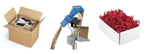 Relleno de papel: La alternativa de relleno más ecológica consiguiendo un excelente resultado, se puede encontrar en rollo (que con el uso de máquinas se puede economizar más y conseguir mejores resultados) o se puede encontrar en virutas, que protege y da mucho color a las entregas.