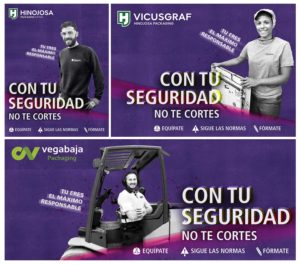 El elemento principal de esta acción son las personas, por ello, para su puesta en marcha se ha contado con la participación de los operarios de las plantas, que han actuado de modelos para la cartelería diseñada adhoc. Previamente se escogieron los perfiles que en mayor medida son el objetivo de la comunicación de la campaña: carretilleros, maquinistas, personal de mantenimiento, etc.