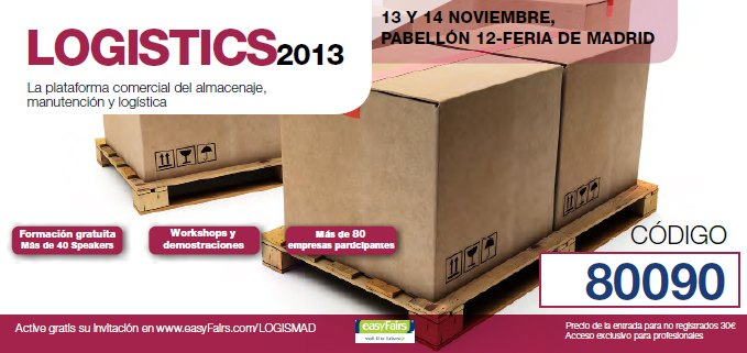Recordarles que el acceso es gratuito, si se registran online a través de la web de LOGISTICS Madrid (www.easyfairs.com/logismad) y deben introducir el código personal que aparece en la invitación adjunta.