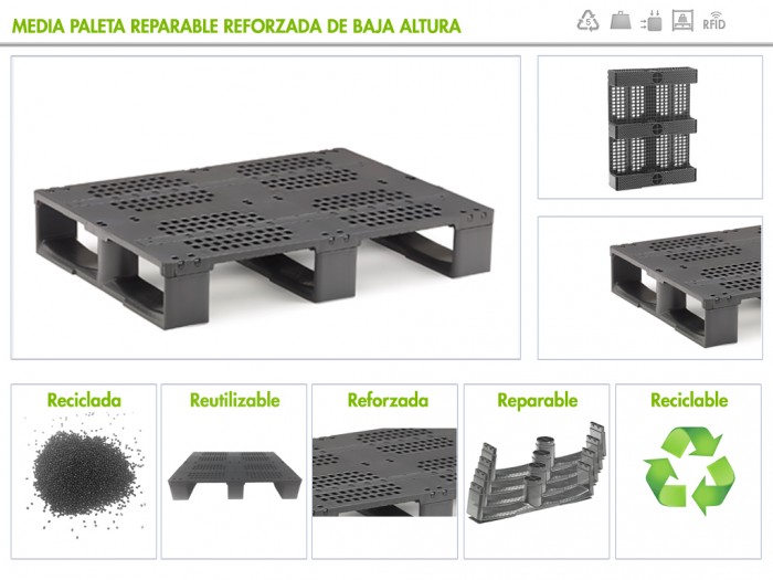 La paleta galardonada con el IPA de 8,5 Kg. de peso y dimensiones 800×600 tiene una altura de 140 mm., es por tanto un 30% más ligera y un 15% más baja que palets de similares características, lo que permite optimizar su manipulación, el transporte, y la reposición. Fabricada a partir de plásticos reciclados y 100% reciclables, supone una revolución en sostenibilidad y ahorro de emisiones de CO2 para toda la cadena de suministro. Se puede considerar la mejor solución integral para productos de gran consumo ya que incrementa el impacto visual del producto en tienda, mejorando la experiencia de compra y facilitando la venta.