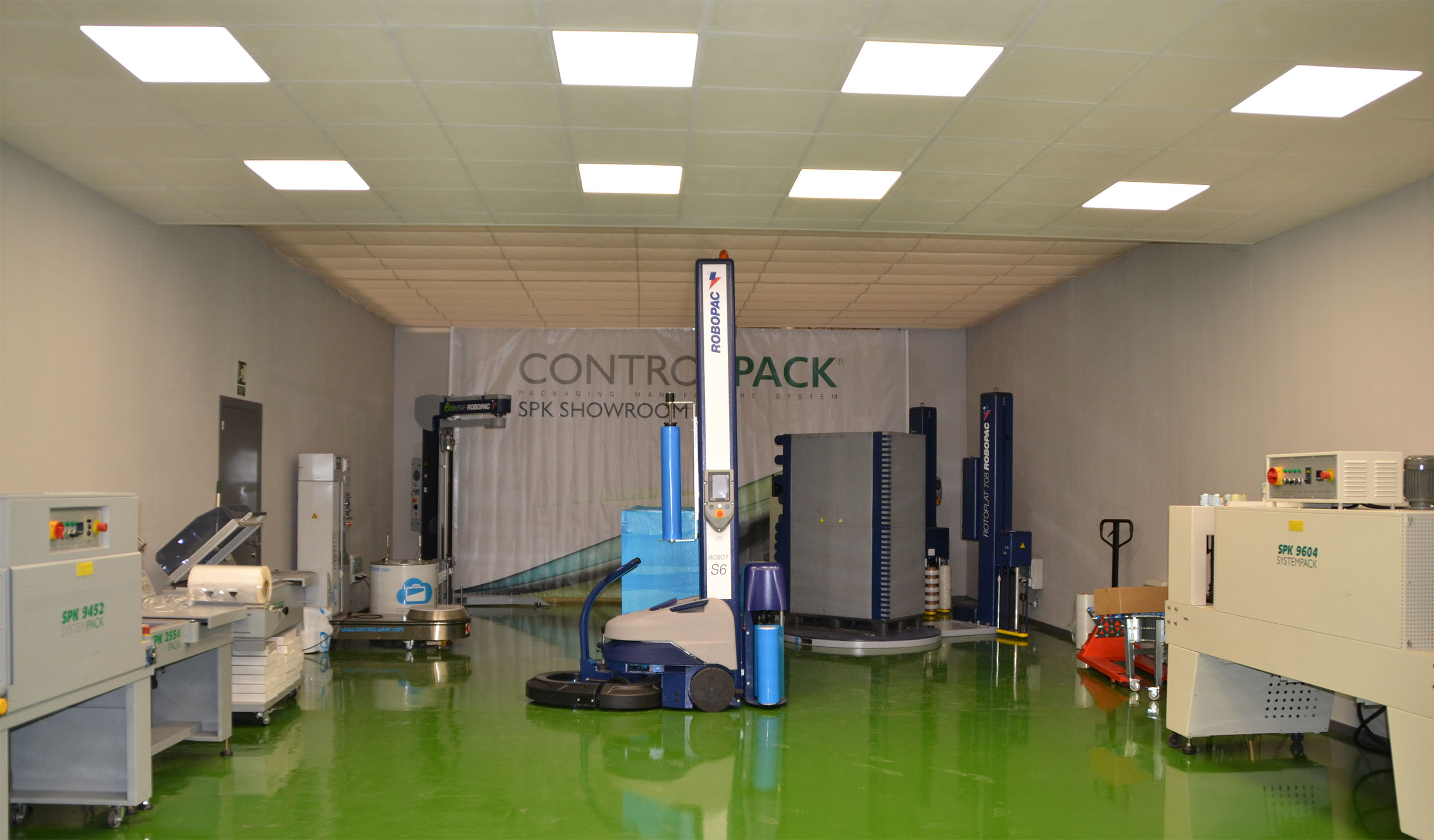 En este espacio de 2.500 m2 se ha habilitado una sala de showroom donde estarán de forma permanente todos los modelos de las máquinas más vendidas por Controlpack. Con esto, Controlpack podrá dar información sobre el terreno de las posibilidades de mejora que los distintos equipos pueden aportar al proceso del cliente.